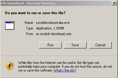 In Internet Explorer (version 6, 7, 8), you will receive a prompt to either save the file or run the file as below.